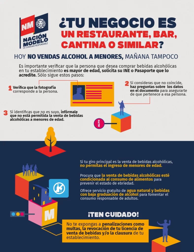 Si trabajas o eres responsable de un establecimiento con venta de bebidas (de botella abierta o cerrada), aquí podrás conocer y descargar un protocolo con recomendaciones para prevenir la venta de bebidas con alcohol a menores de edad.